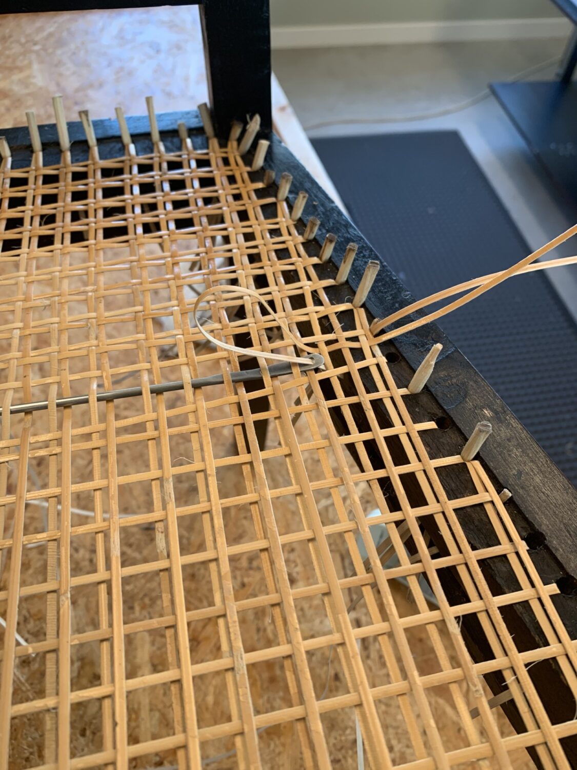 Kuvertflätning av sitsar med pappers/sjögrässnöre